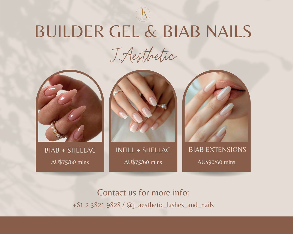 Located in the heart of Gladesville, J.Aesthetic is a boutique nail salon in Sydney offering a refined beauty experience that blends precision and care. From expert Russian manicures and BIAB overlays to brow shaping and lash lifts, every service is designed to enhance your natural beauty in a calm, modern setting.