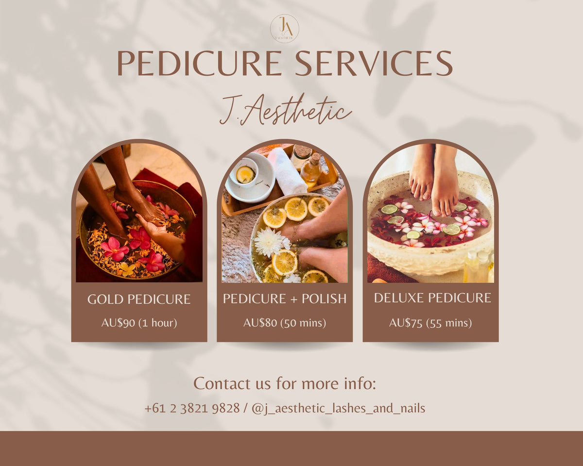- GOLD Pedicure + Normal Polish: A$80 / 50 mins